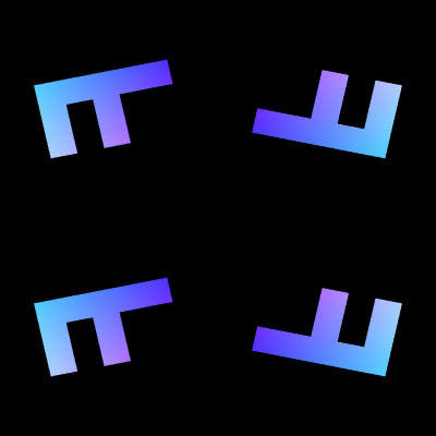 ここまではdrawArraysしか使ってきませんでした。せっかくindexBufferを学んだのにもったいないので、この節ではアトリビュートをエレメント描画で使ってみましょう。とはいえ、整数列を連番ではなくインデックスバッファで用意するだけで、あとは全部同じです。これが3Dなどの描画におけるスタンダードです。複数の頂点に対してポリゴンを用意する際に、三角形一つ一つでは非効率ですから、重複があってもいいようにエレメント描画をするわけです。まあ3Dは無理ですから、普通に平面でやりましょう。描くのは3-1でやった「F」です。