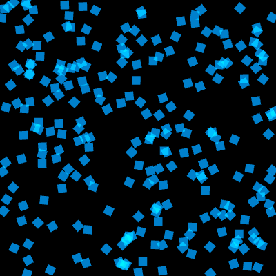 前回はTFOとVAOを使って逐次更新するコードを書きました。いいですね。アップデート処理が見やすくなって満足です。しかし今のままだと点描画しかできないですね...もちろんそんなことはありません。今更新している内容をインスタンスパラメータとして使えば、インスタンシングでパラメータだけ逐次更新するコードを書くのは簡単です。前回のコードを発展させて、正方形を回しながら反射で飛び回らせるコードを書いてみましょう。ひな形ですから味気ないものですが、正方形が他の何かになろうと、3次元空間での運動になろうと、基本は全く同じです。基本って味気ないものなんですよ。創意工夫次第でいくらでも化けます。それでは参りましょう。